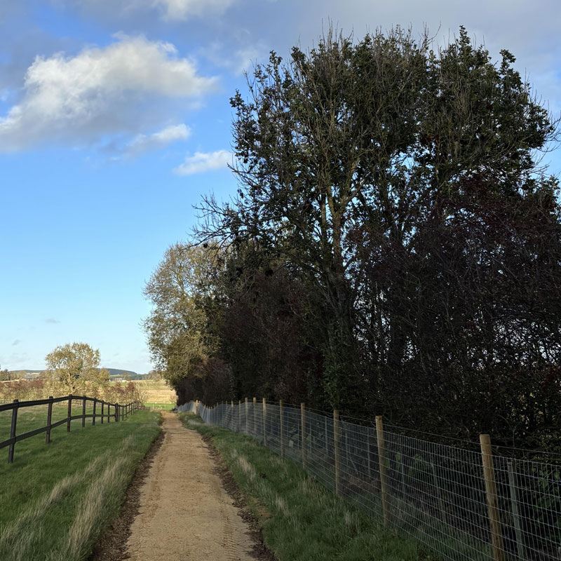 As part of the facilities offered at Marwood Equestrian we are pleased to have around 1.5km of track that is available to hire to hack round.